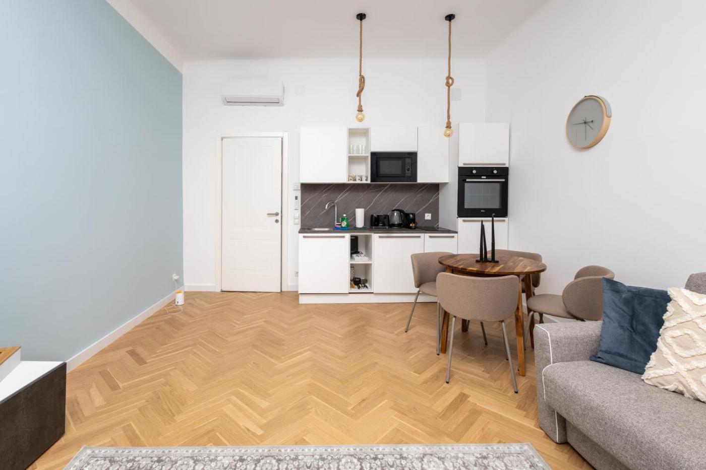 One-Bedroom Apartment. Featuring a private entrance, this air-conditioned apartment comprises 1 living room, 1 separate bedroom and 1 bathroom with a shower and a hairdryer. The fully equipped kitchen features a stovetop, a refrigerator, a dishwasher and kitchenware. The apartment has parquet floors, a seating area with a flat-screen TV, a washing machine, a tea and coffee maker as well as ancourtyard view. The unit offers 2 beds.