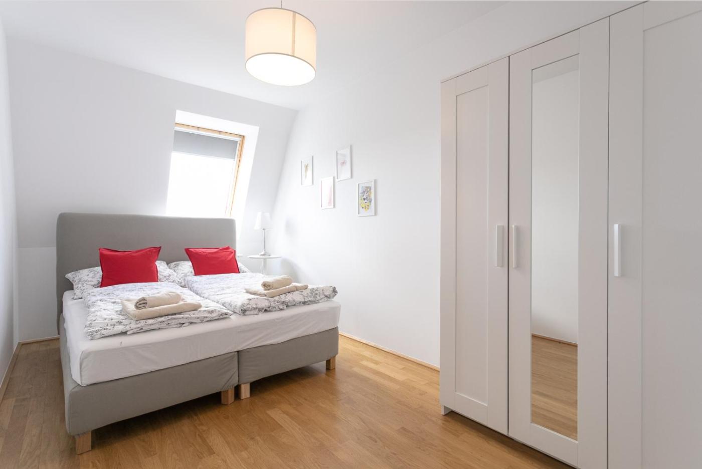 W sypialni goście znajdą wygodne długie łóżka (> 2 metry) 🛏️ oraz pościel, a także przestronną szafę lub garderobę na ubrania. Garderoba zapewnia dodatkową przestrzeń na przechowywanie rzeczy, a dla osób, które cenią wygodę, dostępne są także wieszaki na ubrania oraz suszarka na ubrania.