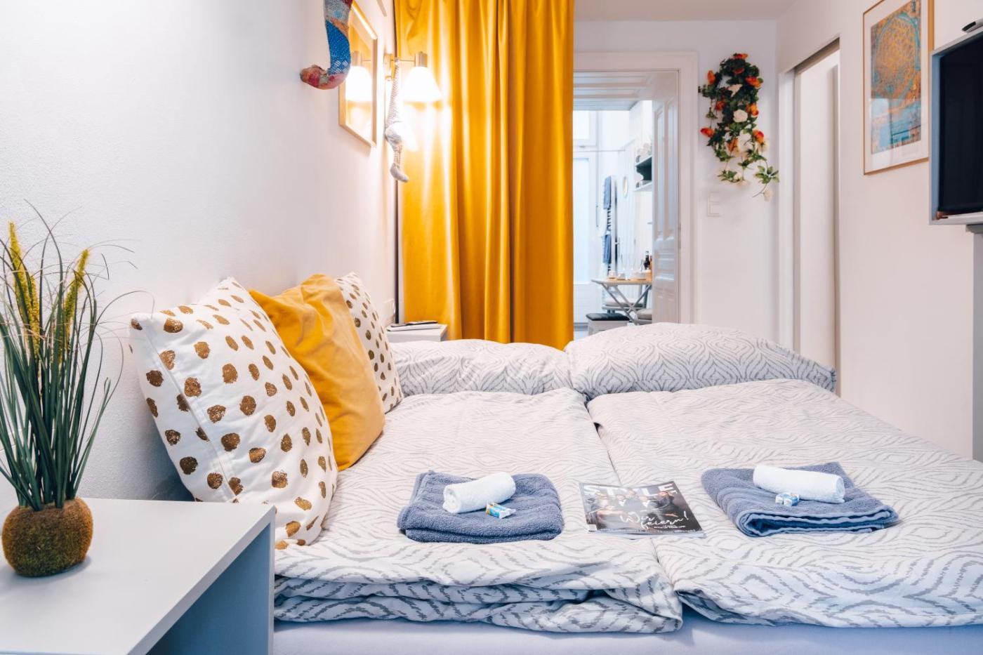 Two-Bedroom Apartment. Featuring a private entrance, this air-conditioned apartment is comprised of 1 living room, 2 separate bedrooms and 1 bathroom with a shower and a hairdryer. Guests can make meals in the kitchen that is fitted with a stovetop, a refrigerator, a dishwasher and kitchenware. This apartment features soundproof walls, flat-screen TV with satellite channels, city views, as well as winechampagne for guests. The unit offers 3 beds.
