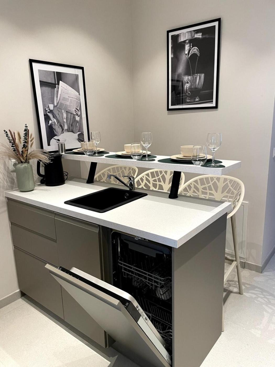 One-Bedroom Apartment. This apartment comprises 1 bedroom, a kitchen and 1 bathroom with a shower and a hairdryer. Guests can make meals in the kitchen that is equipped with a stovetop, a refrigerator, a dishwasher and kitchenware. The apartment provides a tea and coffee maker, a high chair for children and a tiled floor. The unit offers 1 bed.