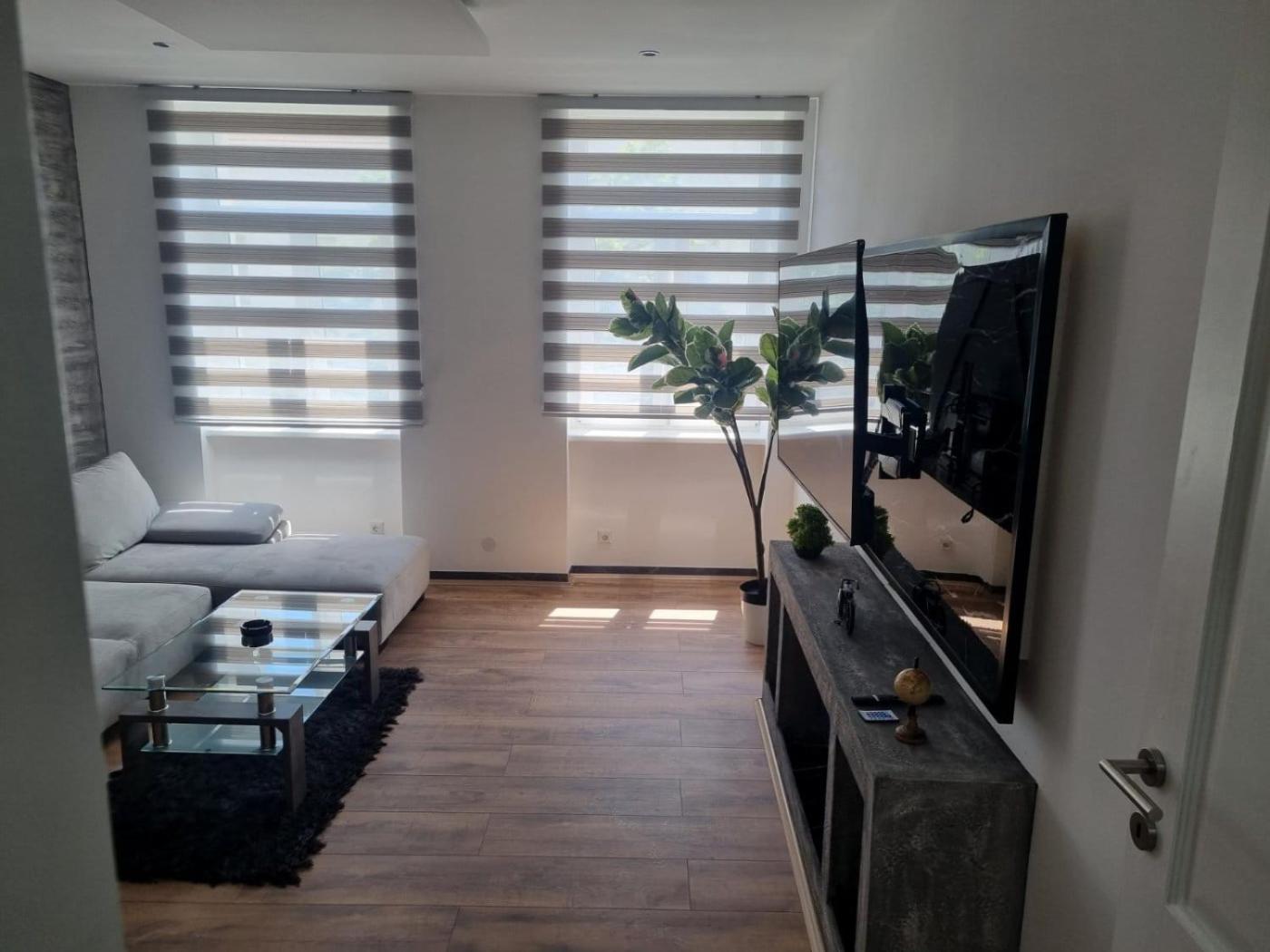 One-Bedroom Apartment. Boasting a private entrance, this apartment features 1 living room, 1 separate bedroom and 1 bathroom with a shower and a hairdryer. Guests can make meals in the kitchen that features a stovetop, a refrigerator, kitchenware and a microwave. This apartment has a tea and coffee maker, flat-screen TV, city views, as well as winechampagne for guests. The unit has 2 beds.