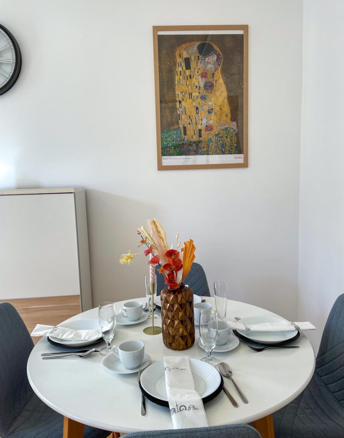 Two-Bedroom Apartment. The apartments kitchen, which features a refrigerator and a dishwasher, is available for cooking and storing food. The apartment provides a washing machine, a tea and coffee maker, a seating area, a flat-screen TV with streaming services, as well as a quiet street view. The unit offers 3 beds.