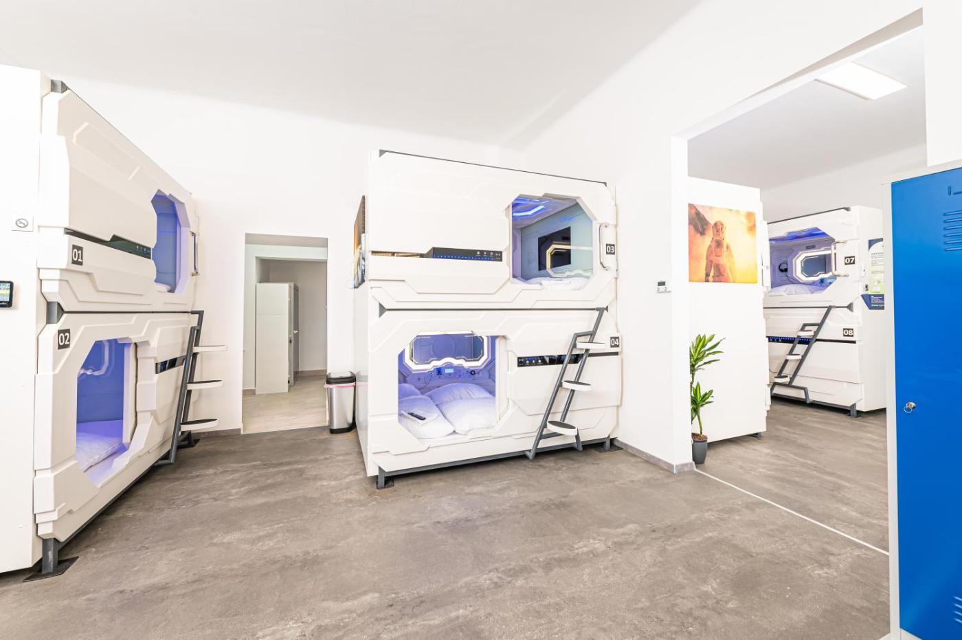 At the capsule hotel, every room is fitted with a wardrobe.units include a safety deposit box.