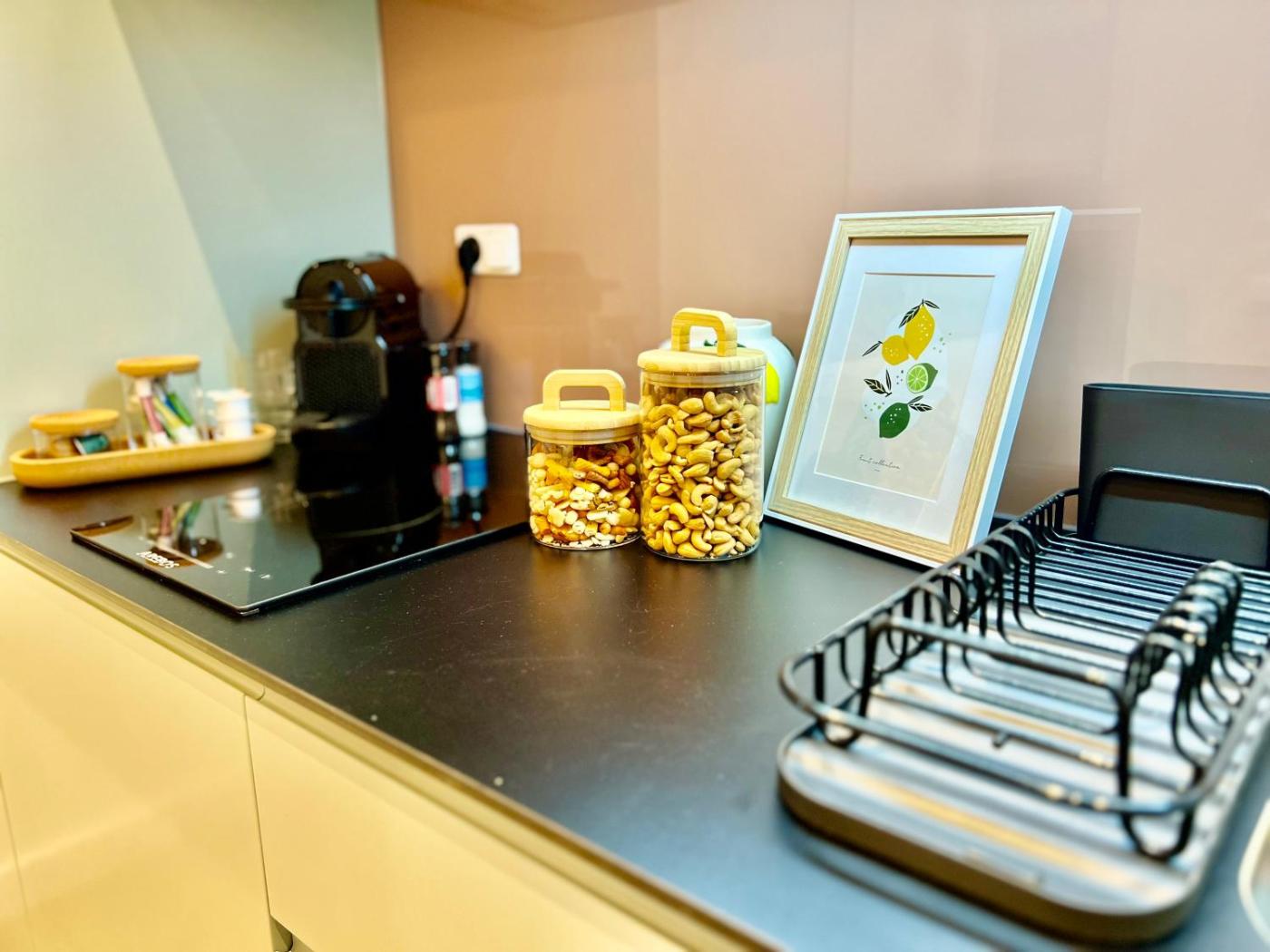 One-Bedroom Deluxe Apartment. Featuring a private entrance, this apartment is comprised of 1 living room, 1 separate bedroom and 1 bathroom with a shower and a hairdryer. In the well-equipped kitchen, guests will find a stovetop, a refrigerator, an oven and a microwave. This apartment features soundproof walls, a tea and coffee maker, flat-screen TV, as well as chocolate for guests. The unit offers 2 beds.