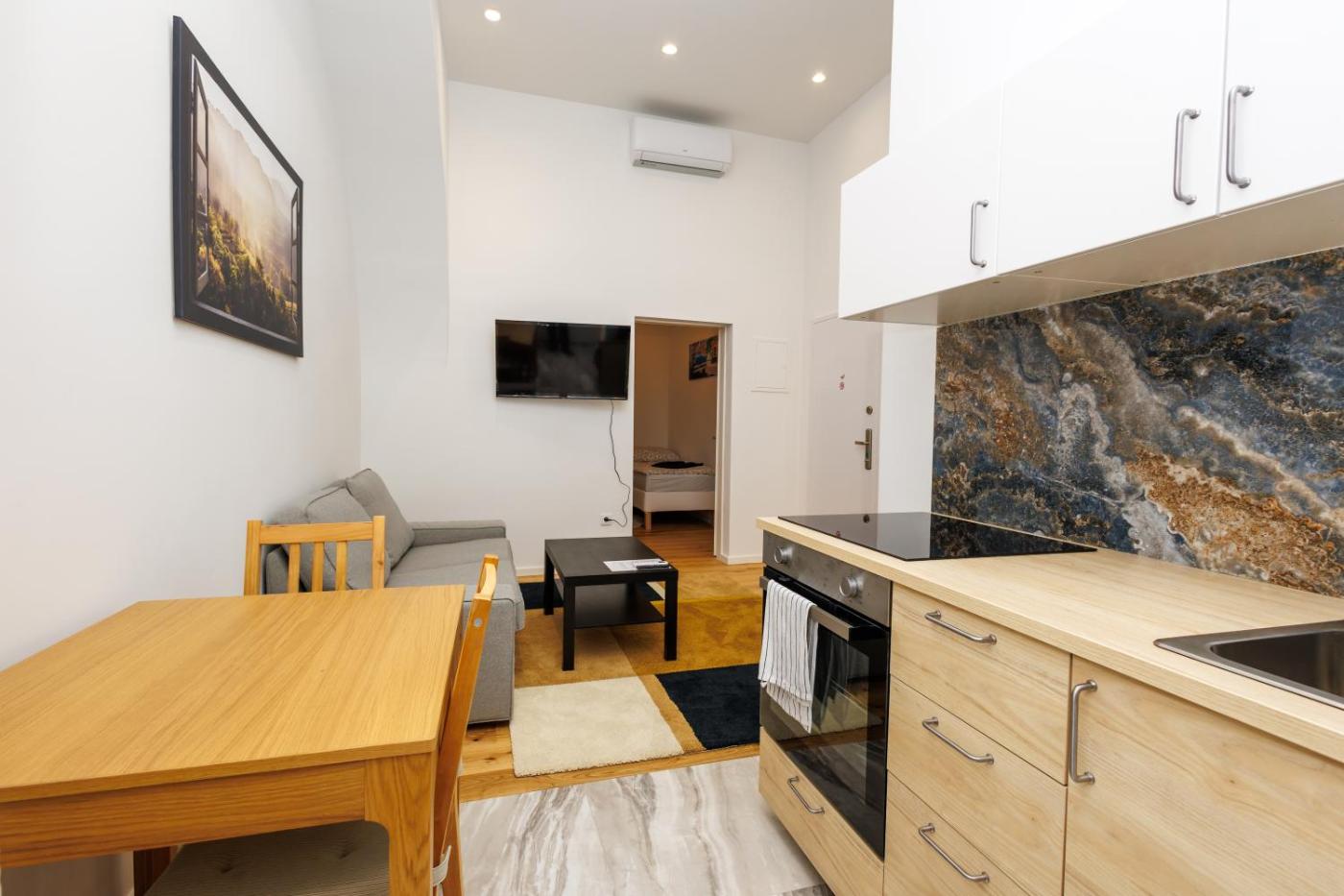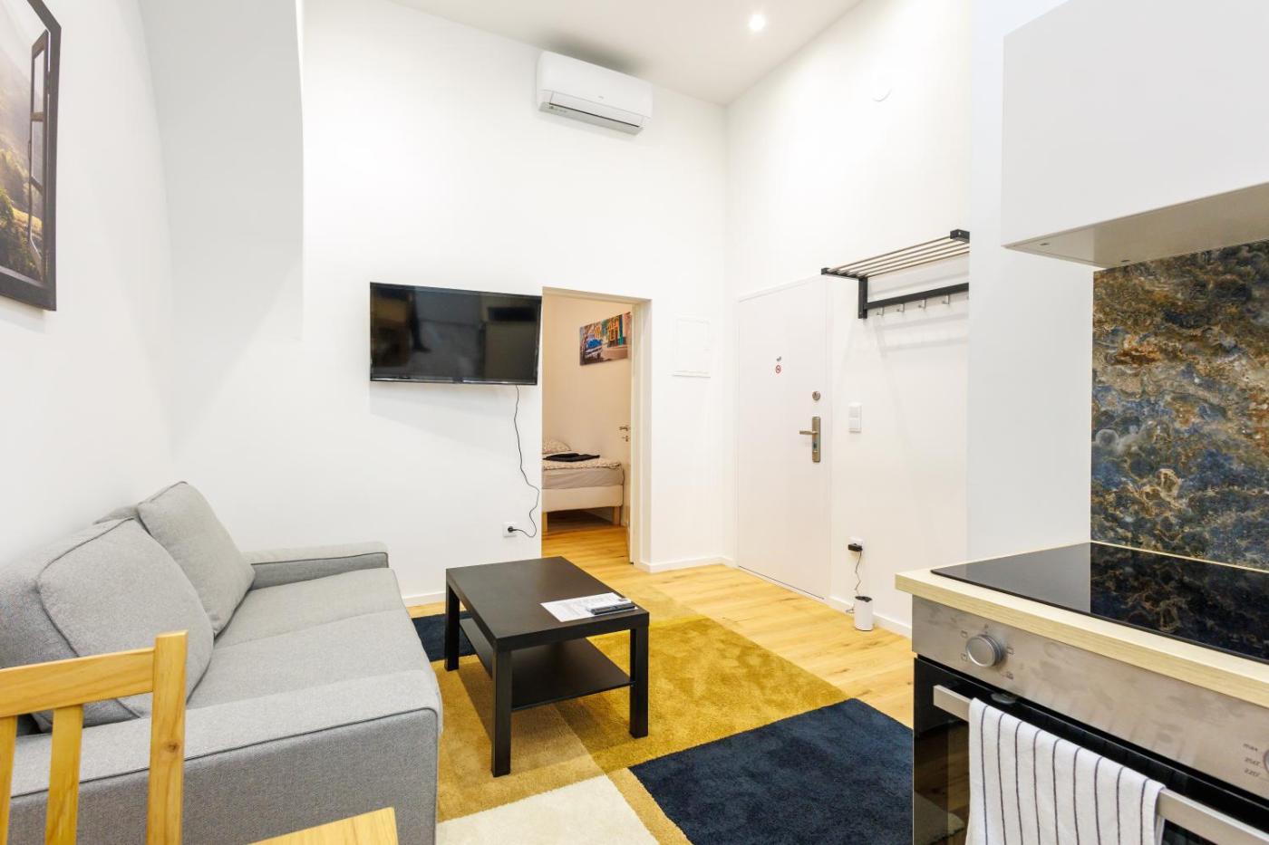 One-Bedroom Apartment. This apartment comes with 1 living room, 1 separate bedroom and 1 bathroom with a walk-in shower and free toiletries. The well-equipped kitchen features a stovetop, a refrigerator, kitchenware and an oven. This apartment has air conditioning, a tea and coffee maker, flat-screen TV, as well as chocolate for guests. The unit has 2 beds. ;