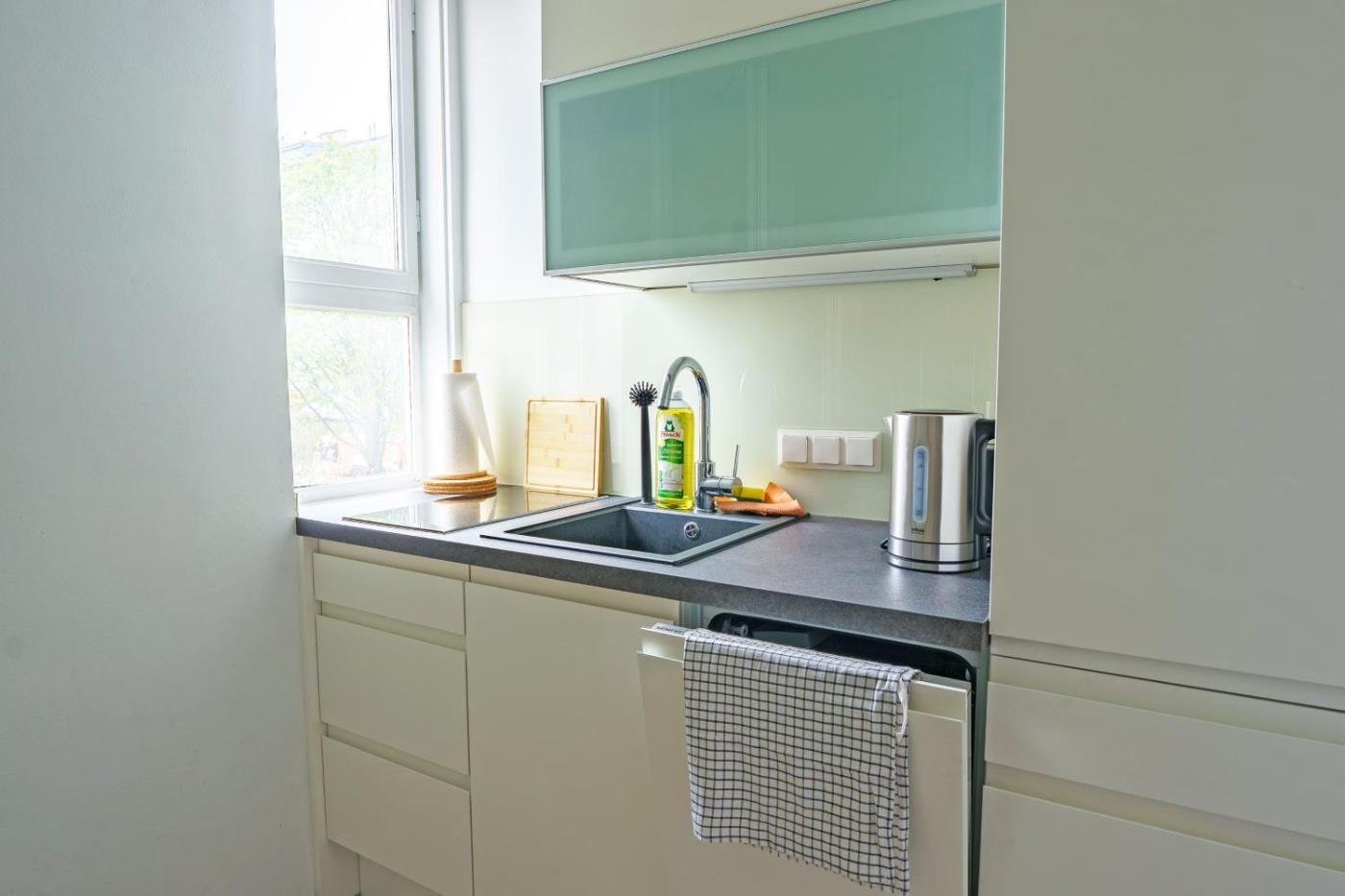 One-Bedroom Apartment. Featuring a private entrance, this apartment also is comprised of 1 bedroom, a seating area and 1 bathroom with a shower and a hairdryer. In the well-equipped kitchen, guests will find a stovetop, a refrigerator, a dishwasher and kitchenware. The apartment offers a flat-screen TV, a tea and coffee maker, a dining area, a wardrobe as well as a quiet street view. The unit offers 1 bed.