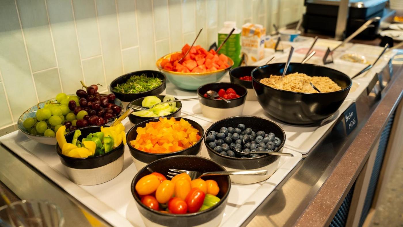 A selection of options including fresh pastries, fruits and juice is available for the buffet breakfast. There is a coffee shop on-site.