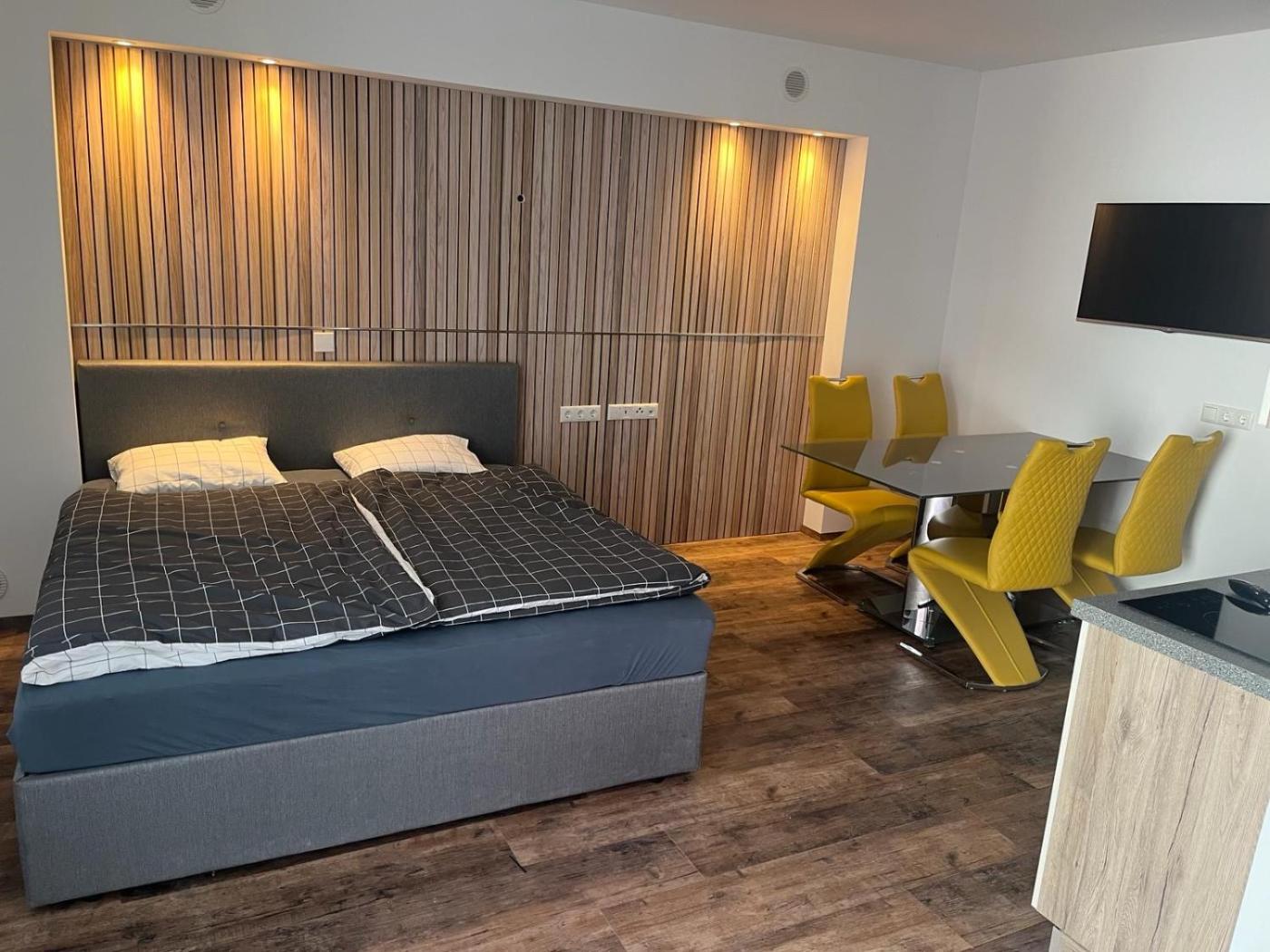 One-Bedroom Apartment. This apartment includes 1 living room, 1 separate bedroom and 1 bathroom with a shower and a hairdryer. The well-fitted kitchenette has a stovetop, a refrigerator and a dishwasher. The apartment offers a coffee machine, a dining area, a wardrobe, heating, as well as a flat-screen TV with streaming services. The unit has 1 bed.